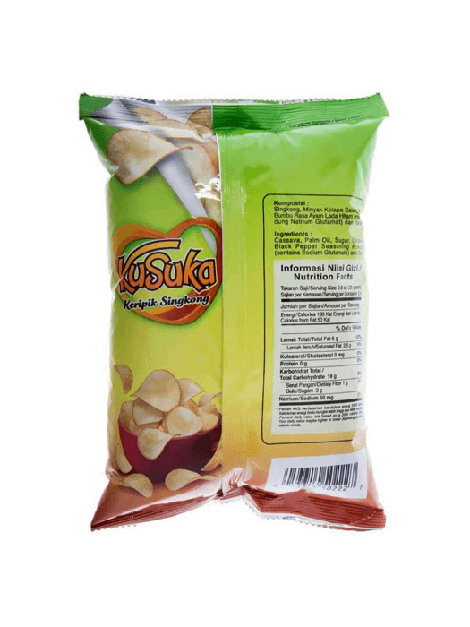 KUSUKA KERIPIK SINGKONG selalu jadi cemilan wajib kapanpun dan dimanapun. KUSUKA dibuat dari Singkong lokal berkualitas tinggi alami tanpa pengawet, pewarna, dan pemanis buatan. KUSUKA KERIPIK SINGKONG setiap potongannya renyah, gak tajam, dan nyaman saat digigit
